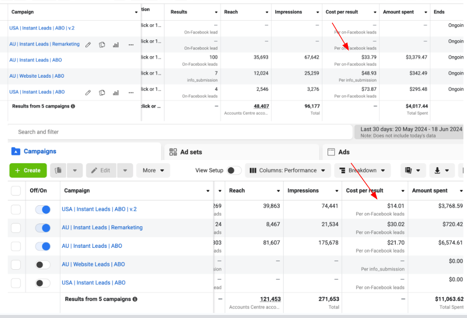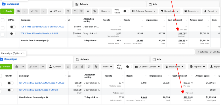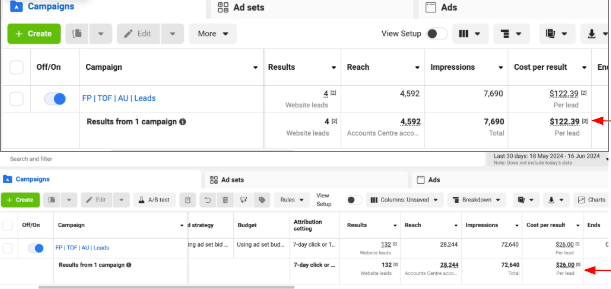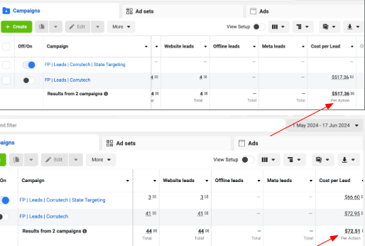 • We started with $517 CPL then dropped the CPL to $72 on Meta.